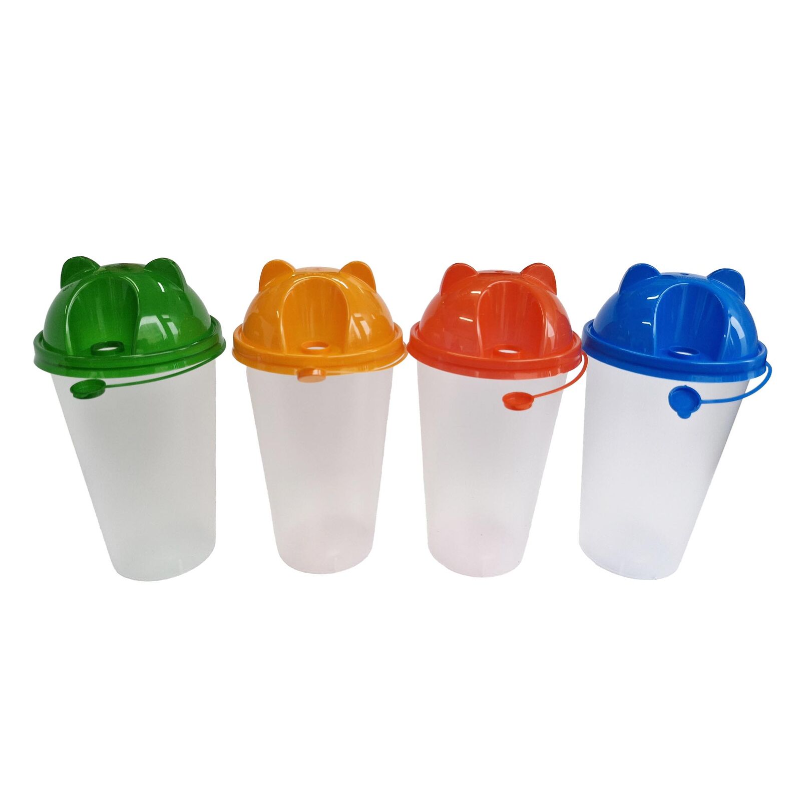 Стакан BUBBLE 500 мл прозрачный с крышкой CAT 4 цвета РР, 4 шт