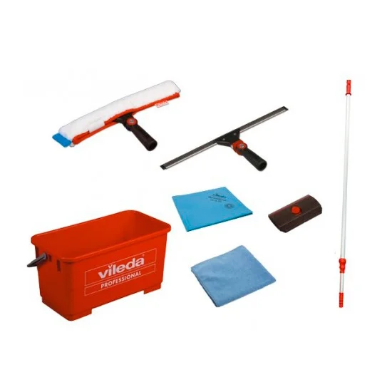 Набор рассчитан на интенсивную эксплуатацию и подходит для обслуживания витрин, панорамных окон, стеклянных перегородок и фасадов.